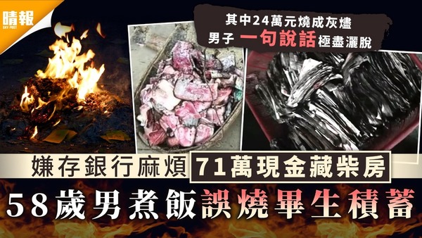 損失慘重│嫌存銀行麻煩71萬現金藏柴房 58歲男煮飯誤燒畢生積蓄